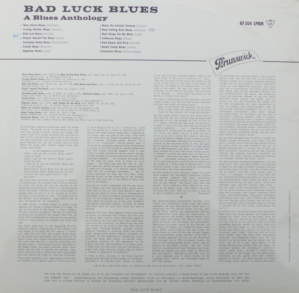 Various – Bad Luck Blues (A Blues Anthology)