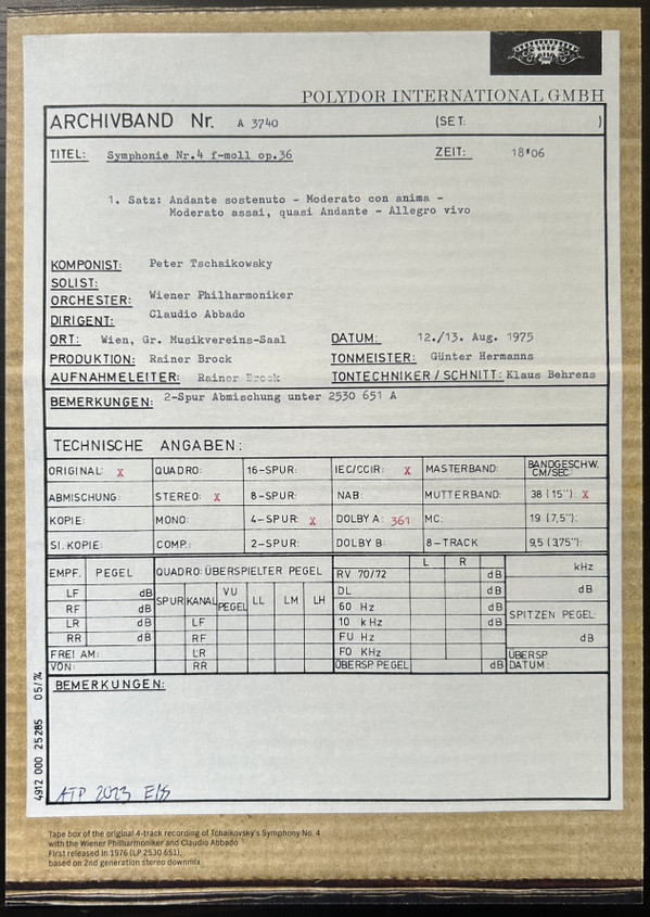 - Producer, Recording Supervisor – Rainer Brock