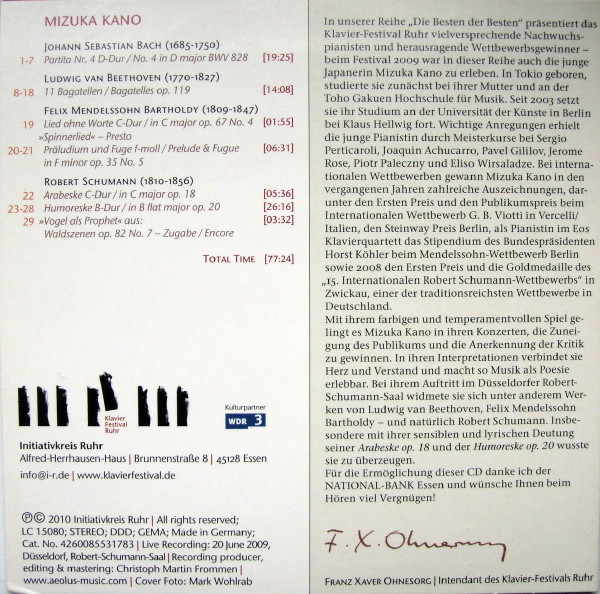 Mizuka Kano – Edition Klavier-Festival Ruhr