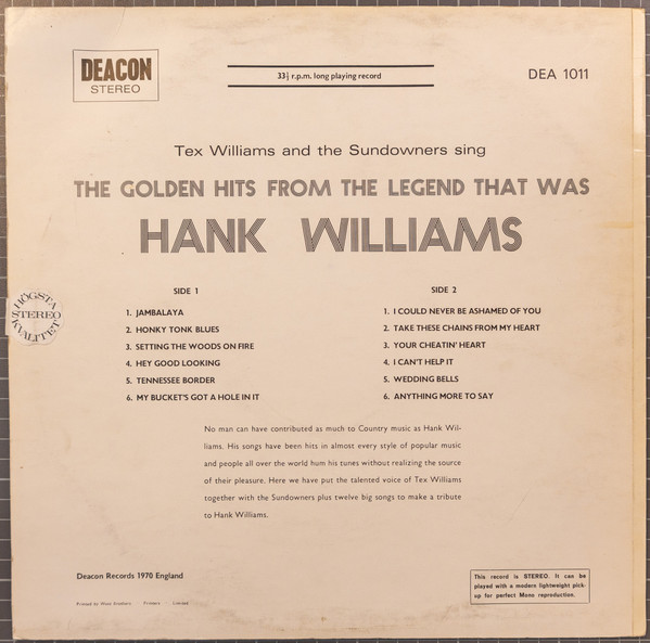 Tex Williams & The Sundowners – The Golden Hits From The Legend That Was Hank Williams