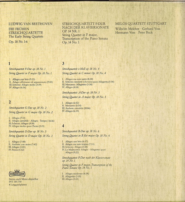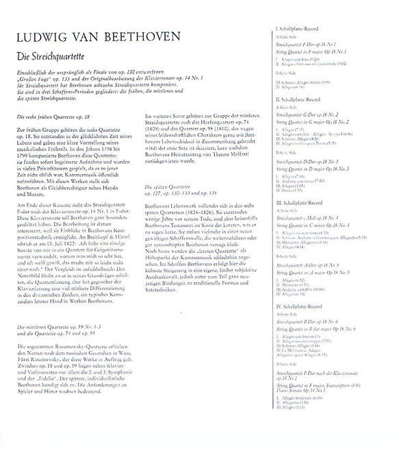 Ludwig van Beethoven – Die Frühen Streichquartette Op. 18 Nr. 1-6 / Streichquartett F-Dur Nach Der Klaviersonate Op. 14 No. 1