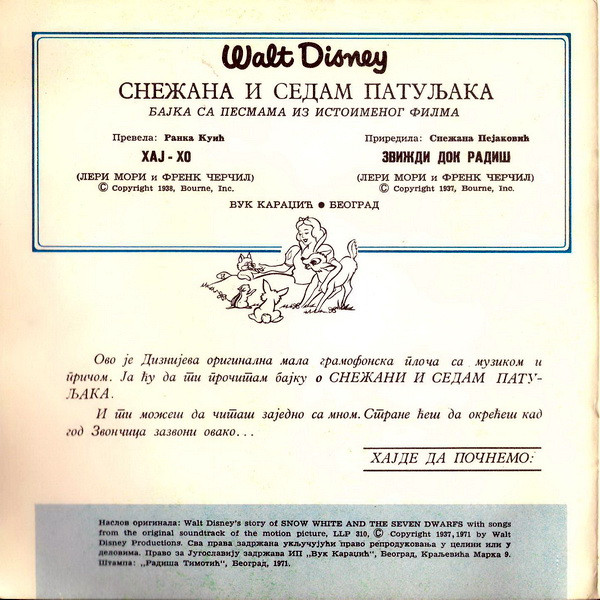 Various – Walt Disney: Снежана И Седам Патуљака (Бајка Са Песмама Из Истоименог Филма)