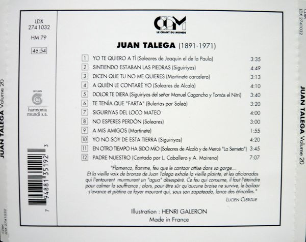 Juan Talega – Grands Cantaores Du Flamenco - Volume 20