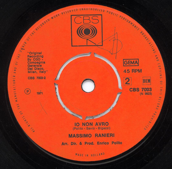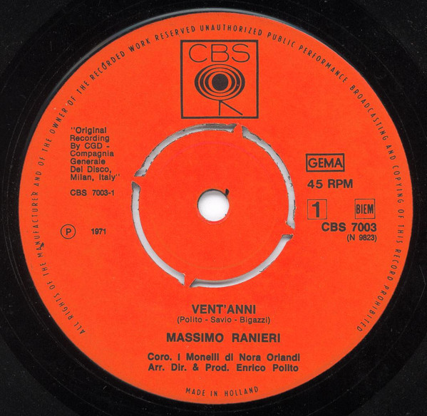Massimo Ranieri – Vent'Anni / Io Non Avro