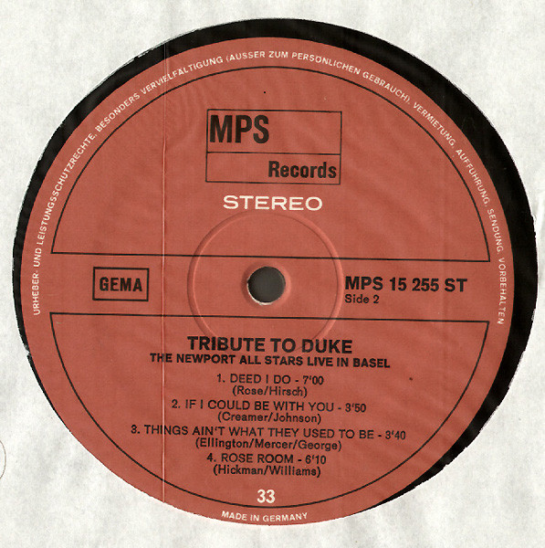 The Newport All Stars – Tribute To Duke, Recorded Live In Basel, Switzerland