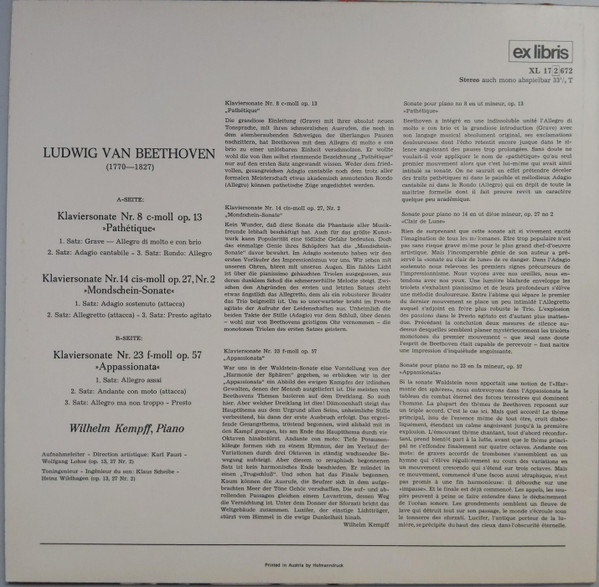 - Piano, Liner Notes [German] – Wilhelm Kempff