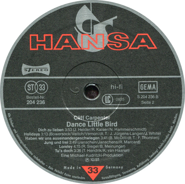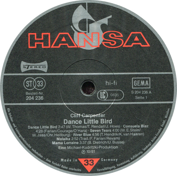Cliff Carpenter Und Sein Orchester – Dance Little Bird