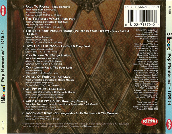 Various – Billboard Pop Memories - 1950-54