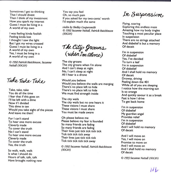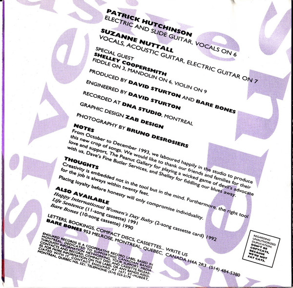 - Vocals, Acoustic Guitar – Suzanne Nuttall