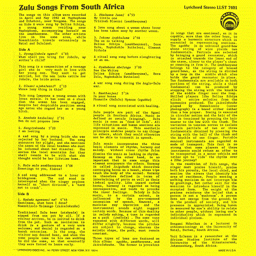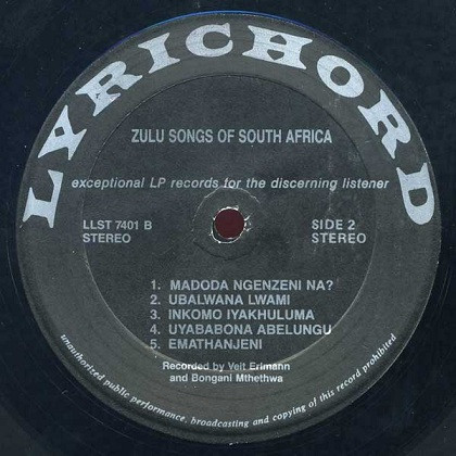Various – Zulu Songs From South Africa