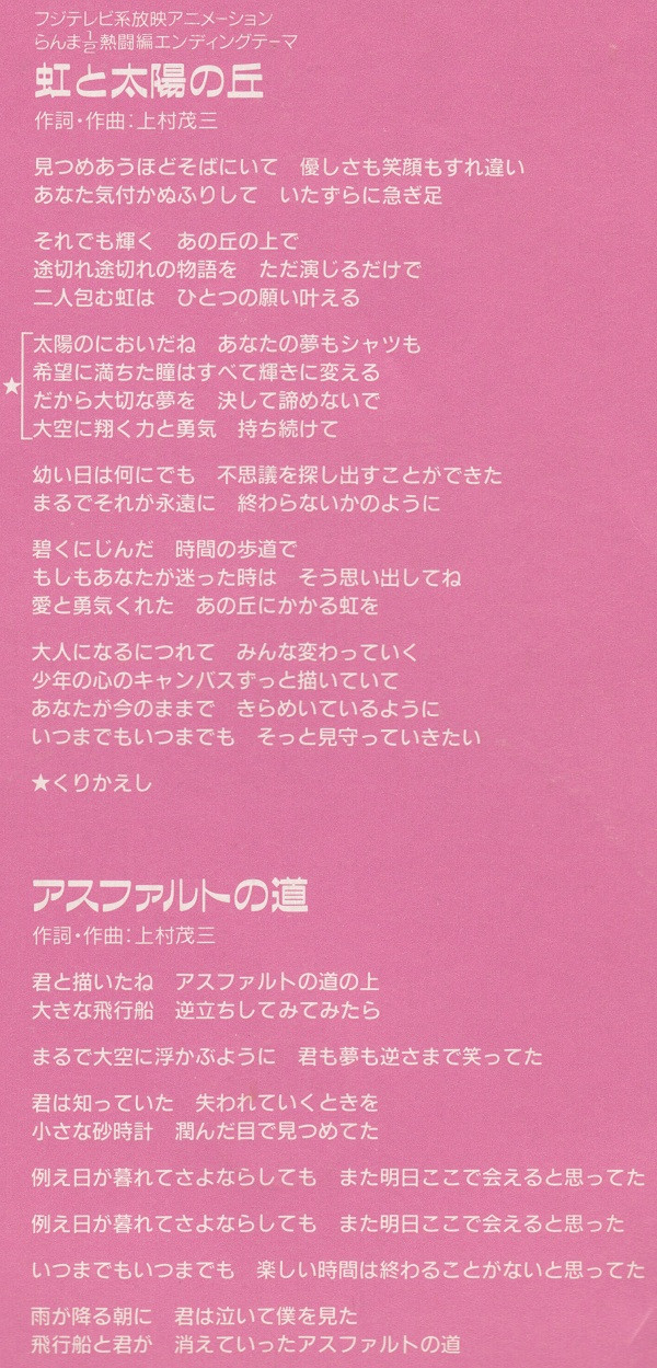 | 3 | 虹と太陽の丘(オリジナルカラオケ) | 4:16 |