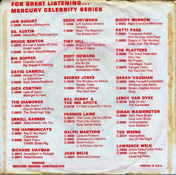 - Record Company – Mercury Record Corporation