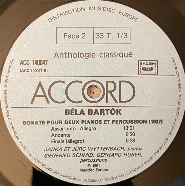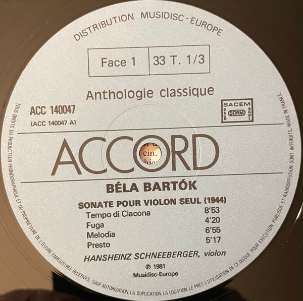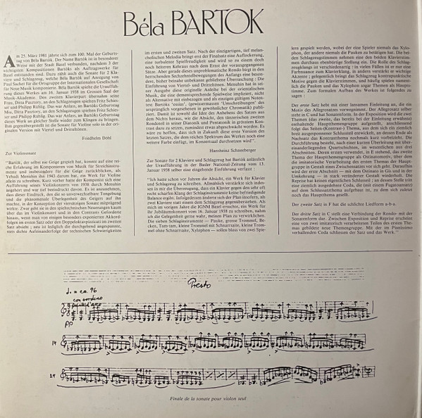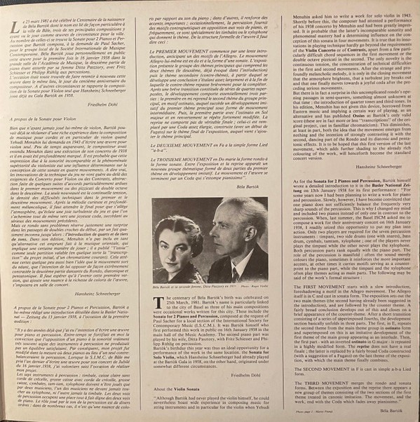 Béla Bartók – Sonate Pour Violon Solo (1944), Sonate Pour Deux Pianos Et Percussion (1937)
