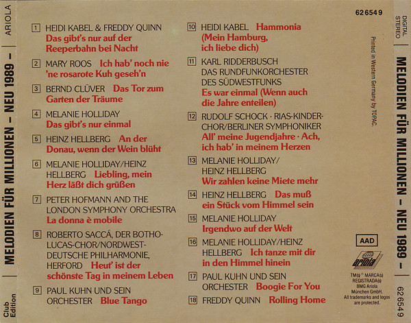 | Лейбл: | Ariola – 62 654 9 Bertelsmann Club – 62 654 9 |