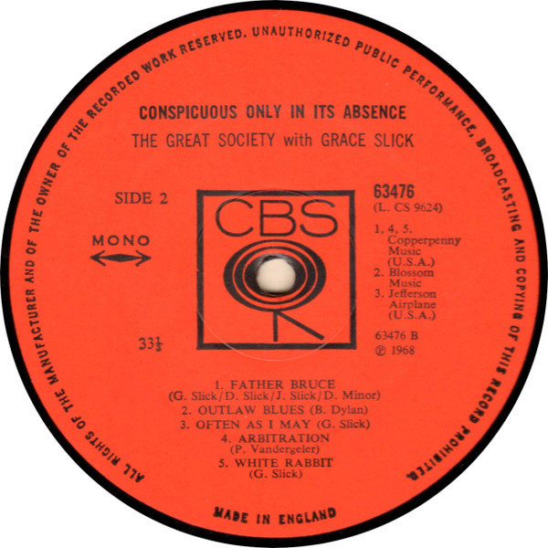 - Published By – Jefferson Airplane Music
