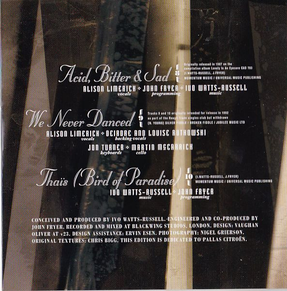 Music By – Ivo Watts-Russell Programmed By – John Fryer Written-By – Ivo Watts-Russell Written-By – John Fryer |