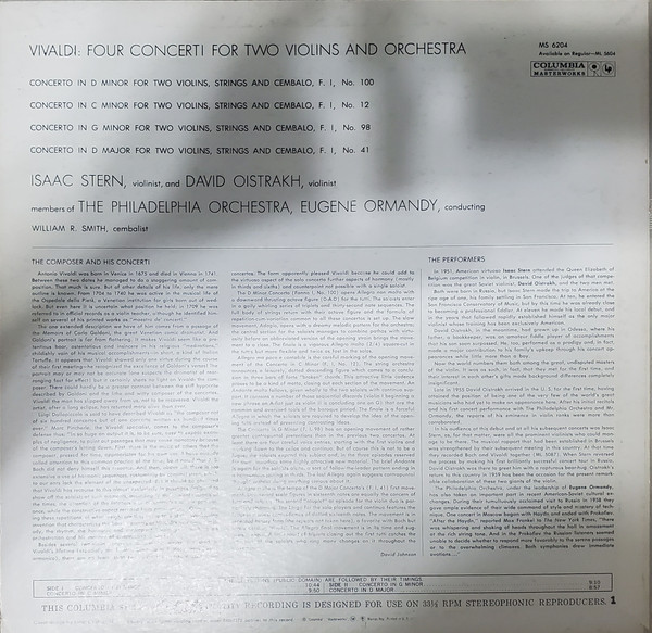 The Philadelphia Orchestra – Four Vivaldi Concerti For Two Violins