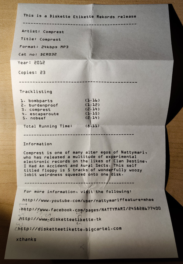 | Лейбл: | Diskette Etikette Rekords – DER032 |