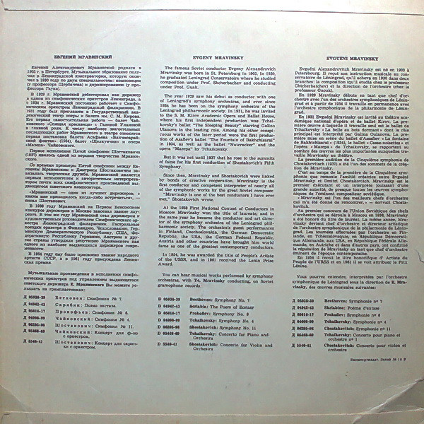 - Conductor – Evgeny Mravinsky