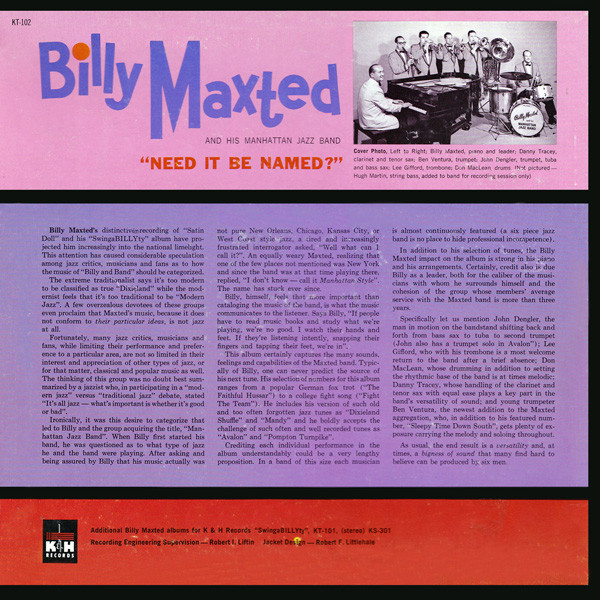 Billy Maxted's Manhattan Jazz Band – Need It Be Named?