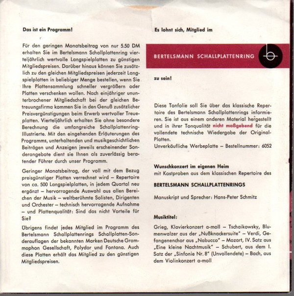Лейбл: Bertelsmann Schallplattenring – 6052