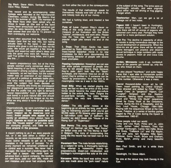 - Guitar, Vocals, Electronic Drums [Roland The Drum Machine], Liner Notes – Steve Albini