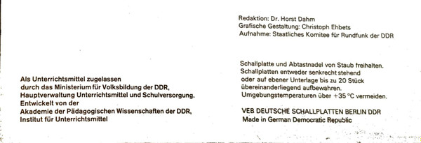 - Record Company – VEB Deutsche Schallplatten Berlin