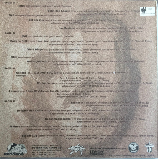 Featuring – Joe Rilla Featuring – PMC (2) Featuring – SMC Lyrics By – Bertram Riedel Lyrics By – Thorsten Krüger (3) Lyrics By – Holger Peters (2) Mixed By – Markus Nachtigal Producer, Arranged By – DJ Opossum |