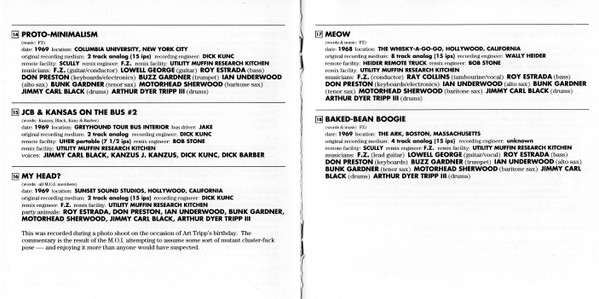 Alto Saxophone [Alto Sax] – Ian Underwood Baritone Saxophone [Baritone Sax], Vocals [Vocal] – Motorhead Sherwood Bass, Vocals [Lunatic Vocal] – Roy Estrada Drums, Vocals [Vocal] – Art Tripp Drums, Vocals [Vocal] – Jimmy Carl Black Guitar [Guitar FX], Conductor – Frank Zappa Guitar [Guitar FX], Vocals [Vocal] – Lowell George Keyboards, Electronics, Tape [Tape Playback] – Don Preston Music By – Frank Zappa Tenor Saxophone [Tenor Sax], Vocals [Vocal], Recorded By [Documentary Recordist] – Bunk Gardner Trumpet – Buzz Gardner Words By – Roy Estrada Words By – Frank Zappa |
