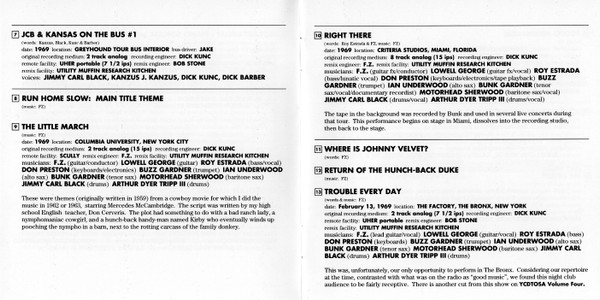 Alto Saxophone [Alto Sax] – Ian Underwood Baritone Saxophone [Baritone Sax] – Motorhead Sherwood Bass – Roy Estrada Conductor – Frank Zappa Drums – Art Tripp Drums – Jimmy Carl Black Keyboards, Electronics – Don Preston Tambourine, Vocals [Vocal] – Ray Collins Tenor Saxophone [Tenor Sax] – Bunk Gardner Words By, Music By – Frank Zappa |
