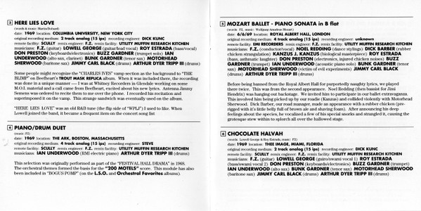 Bass, Voice [Asthmatic Laughter] – Roy Estrada Conductor, Vocals [Vocal] – Frank Zappa Drums – Art Tripp Drums – Jimmy Carl Black Electronics, Noises [Injured Chicken Noises] – Don Preston Music By – Wolfgang Amadeus Mozart Performer [Biological Masterpiece] – Kansas J. Canzus Performer [Dance Stylings] – Noel Redding Performer [Rubber Chicken Strangulation] – Dick Barber Performer [Victim Of Evil Experiments] – Motorhead Sherwood Piano [Acoustic Piano Solo], Soloist [Acoustic Piano Solo] – Ian Underwood Tenor Saxophone [Tenor Sax] – Bunk Gardner Trumpet – Buzz Gardner Words By – Frank Zappa |