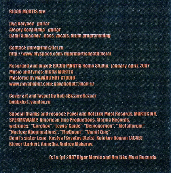 - Recorded At – Rigor Mortis Home Studio