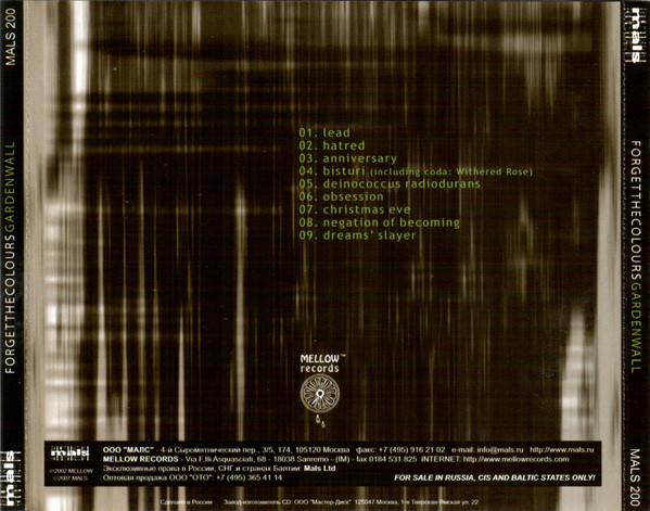 - Matrix / Runout : mals 200 GARDEV WALL "Forget the Colours" www.masterdisc.ru