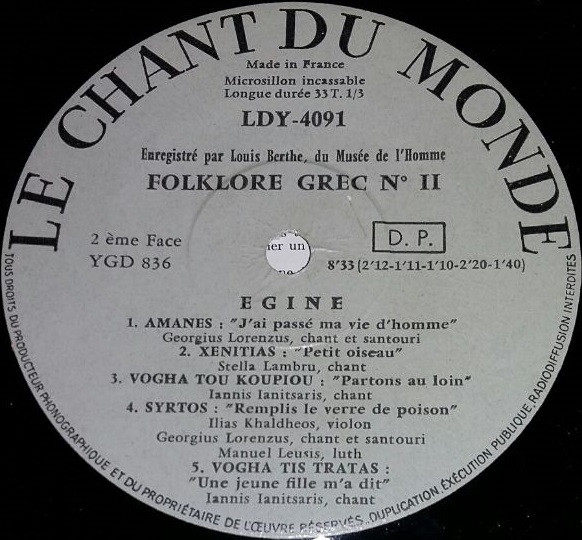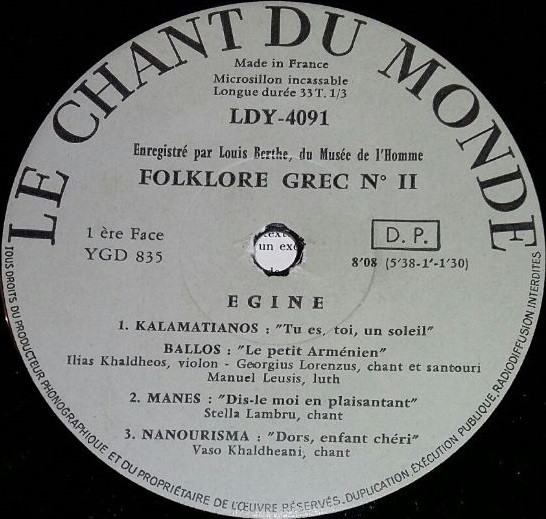 | A1 | Kalamatianos: "Tu Es Toi Un Soleil" - Ballos: "Le Petit Arménien" |