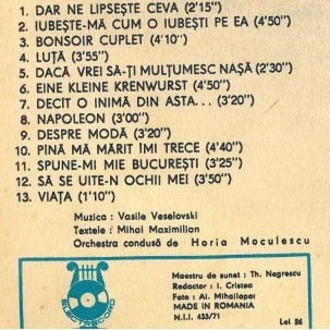 - Vocals – Stela Popescu