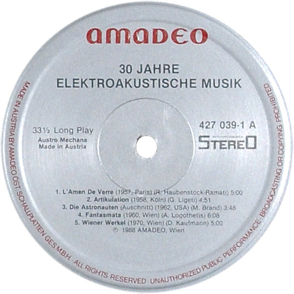 Лейбл: Amadeo – 427 039-1 Österreichischer Musikrat – 427 039-1