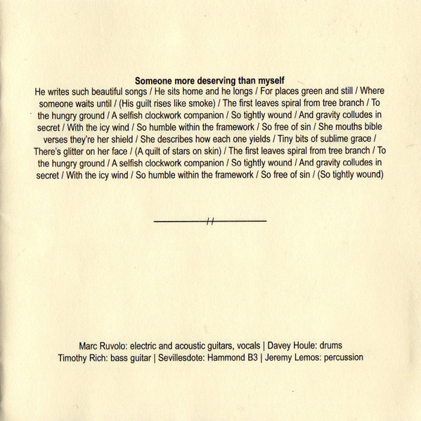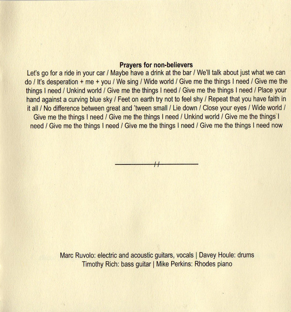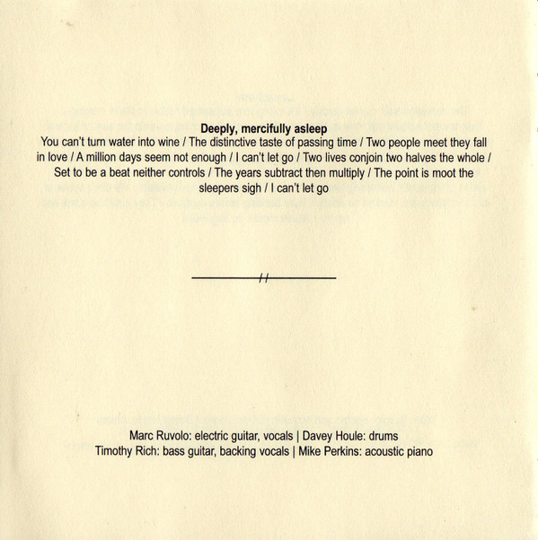 Bass Guitar – Timothy Rich Drums – Davey Houle Electric Guitar, Acoustic Guitar, Lead Vocals – Marc Ruvolo Piano – Mike Perkins |