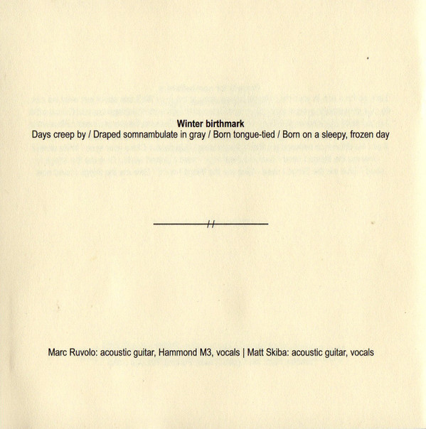 Bass Guitar, Backing Vocals – Timothy Rich Drums – Davey Houle Electric Guitar, Acoustic Guitar, Lead Vocals – Marc Ruvolo Violin – Susan Porada |