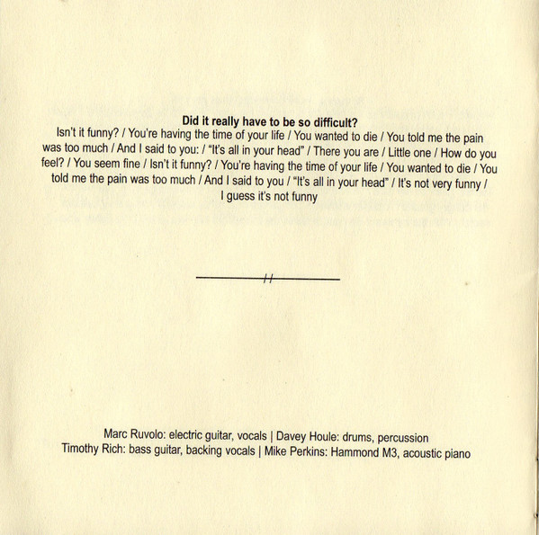 Bass Guitar, Backing Vocals – Timothy Rich Drums – Davey Houle Electric Guitar, Lead Vocals – Marc Ruvolo Piano – Mike Perkins |