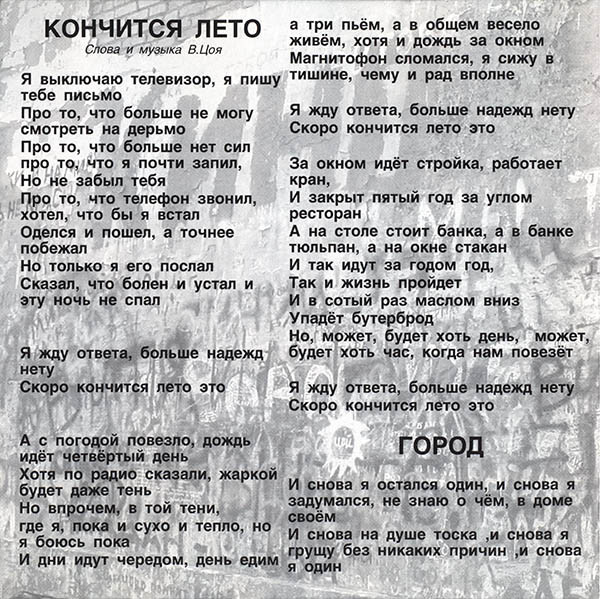 - Copyright (c) – М. Цой
