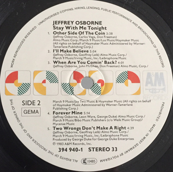 Arranged By [Horn Arrangements] – Jerry Hey Engineer [Assistant Engineer] – Barbara Rooney Written-By – Jeffrey Osborne Written-By – Geoffrey Leib |