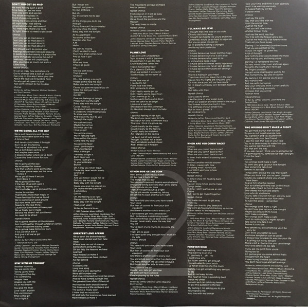 Arranged By [Horn Arrangements] – George Duke Arranged By [Horn Arrangements] – Jeffrey Osborne Engineer [Assistant Engineer] – Barbara Rooney Engineer [Assistant Engineer] – Matt Forger Written-By – Don Freeman Written-By – Jeffrey Osborne Written-By – Michael Sembello |