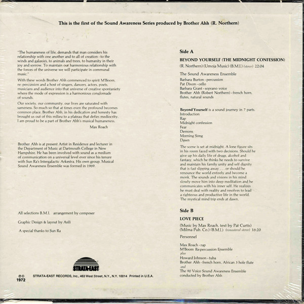 Chorus – The 90 Voice Sound Awareness Ensemble French Horn, Flute [African 3 Hole Flute], Conductor [Chorus] – Brother Ahh Music By, Guest, Rap – Max Roach Percussion – M'Boom Re:percussion Ensemble Text By – Patricia Curtis Tuba – Howard Johnson (3) |