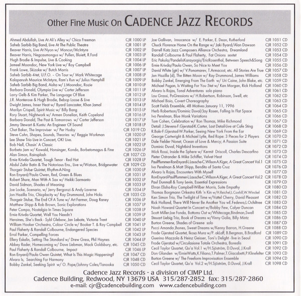 | Лейбл: | Cadence Jazz Records – CJR 1095 |