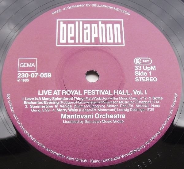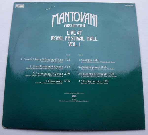 Mantovani And His Orchestra – Live At Royal Festival Hall Vol.1