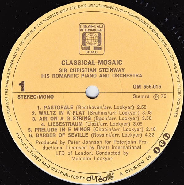 - Conductor, Arranged By – Malcolm Lockyer