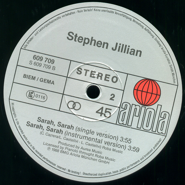 | B2 | Sarah Sarah (Instrumental Version) |