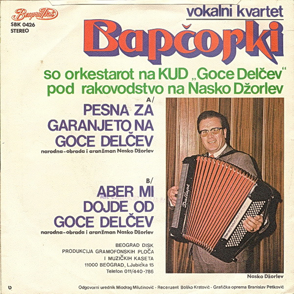 Vokalni Kvartet ›Bapčorki‹ – Pesna Za Garanjeto Na Goce Delčev / Aber Mi Dojde Od Goce Delčev