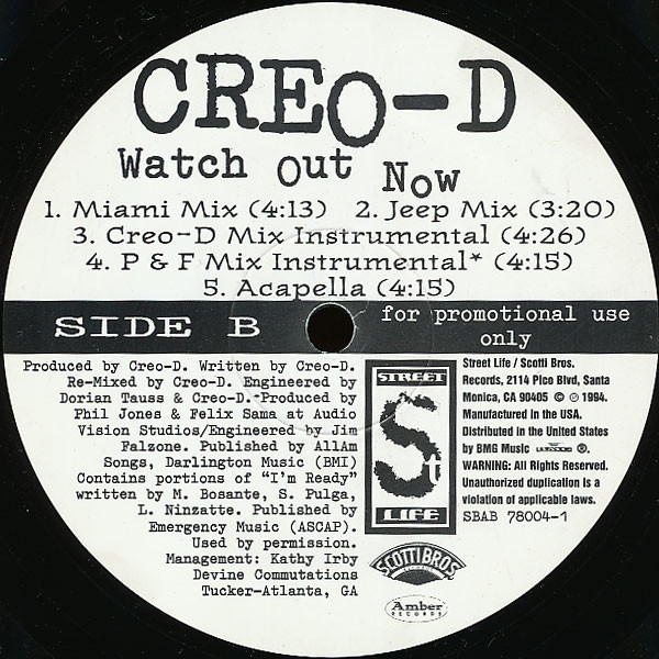 | B3 | Watch Out Now (Creo-D Mix Instrumental) |