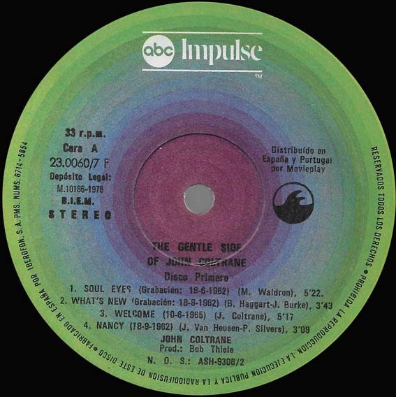 - Saxophone [Tenor, Alto] – John Coltrane